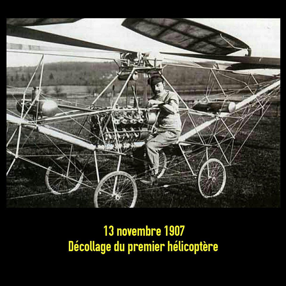 Et cette date du 13 novembre 1907 sera considérée dans toutes les histoires de l’aviation, comme étant celle du premier vol libre d’un hélicoptère avec son pilote.