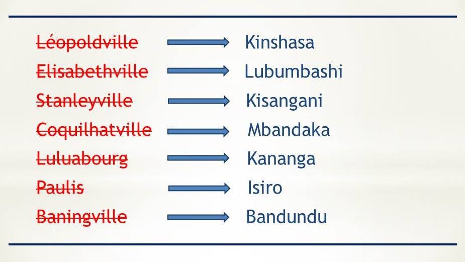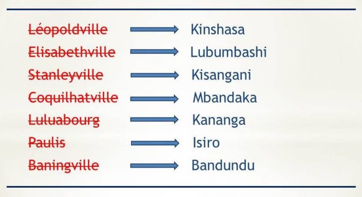 Notons que quelques années avant l’indépendance de 1960 et lors du recours à l’authenticité de 1971, d’autres villes avaient été/furent débaptisées :