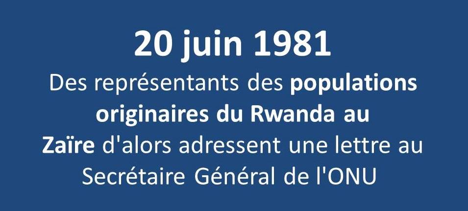 Ce jour-là, pendant que se prépare à l’Assemblée nationale la loi de 1981 sur la nationalité zaïroise, 5 intellectuels rwandophones, inquiets, adressent une lettre au Secrétaire Général de l’ONU en vue de l’organisation d’un référendum d’autodétermination au Kivu. Dans leur lettre, ils précisaient “il ne s’agit pas d’une aventure ou d’une subversion, mais bien d’une mobilisation générale des populations originaires du Rwanda en République du Zaïre qui sensibilisent les autorités internationales sur leur légitime cause, quelles que soient les conséquences qui en découlent”.