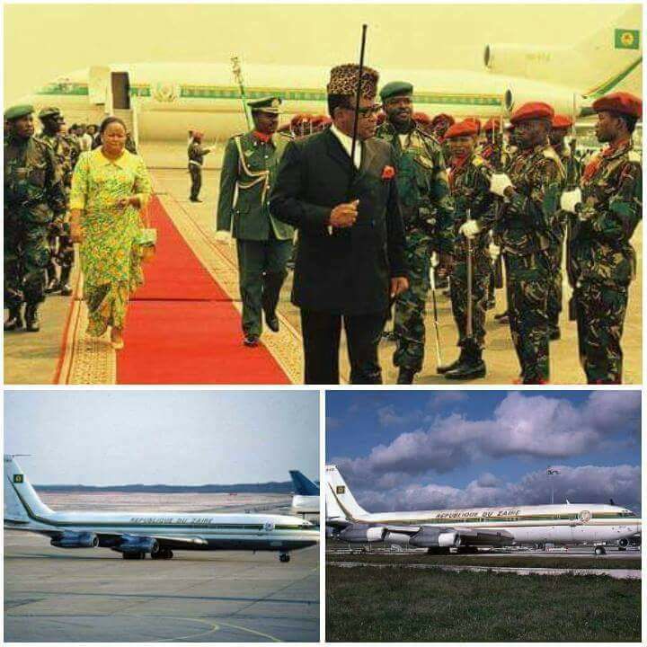A son arrivée au pouvoir, Mobutu comprend l’utilité d’avoir un appareil présidentiel. Il y jettera alors tout son dévolu pour s’équiper, durant ses 32 ans de règne, d’appareils neufs, ultra modernes, confortables et dignes de l’homme d’Etat qu’il était. La première acquisition fut faite ce 26 juin, moins d’une année après son arrivée au pouvoir par le coup d’Etat de novembre 1965. Mobutu utilise d’abord un DC 8 (appelé “Kisangani”) pour ses voyages à l’étranger. Puis, lorsque la compagnie aérienne nationale acquiert des DC 10, il délaisse les DC 8 et s’empare d’un de ses deux fleurons qu’il baptisa du nom de sa résidence officielle : le “Mont Ngaliema”. Outre le “Mont Ngaliema”, Mobutu disposait aussi d’un Boeing 737 qu’il utilisait parfois pour ses voyages en Afrique, d’un avion militaire C130 (appelé “Libumu Ndunda” et qu’on dit qu’il pilotait parfois lui-même) et d’un hélicoptère de commandement Puma. Enfin, en 1992, il acheta un Boeing 727/30 nommé “Ville de Lisala” (en souvenir de son village de naissance). En fuyant Kinshasa le 16 mai 1997, il laissera l’avion présidentiel officiel au profit d’un somptueux jet privé qu’il loua à un monarque du golfe. C’est cet avion que Laurent-Désiré Kabila récupéra à sa prise de pouvoir et en fit le premier avion présidentiel post-Mobutu (après l’avoir baptisé “Hewa Bora”). A ce jour, la flotte présidentielle de la RD Congo comprend un Boeing 727 pour les déplacements à l’intérieur du pays et en Afrique, un Boeing 707 pour les déplacements longue distance (Europe et Asie) et un Gulfstream pour les déplacements des autres dignitaires de la République (président de l’Assemblée nationale, président du Sénat, Premier ministre, ministres et autres personnalités ayant un rang ministériel, haut-fonctionnaires d’État, ambassadeurs en déplacement officiel pour le compte de l’État, etc.).